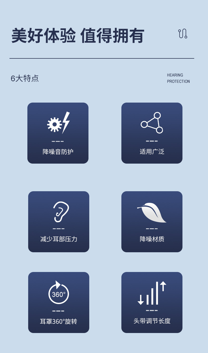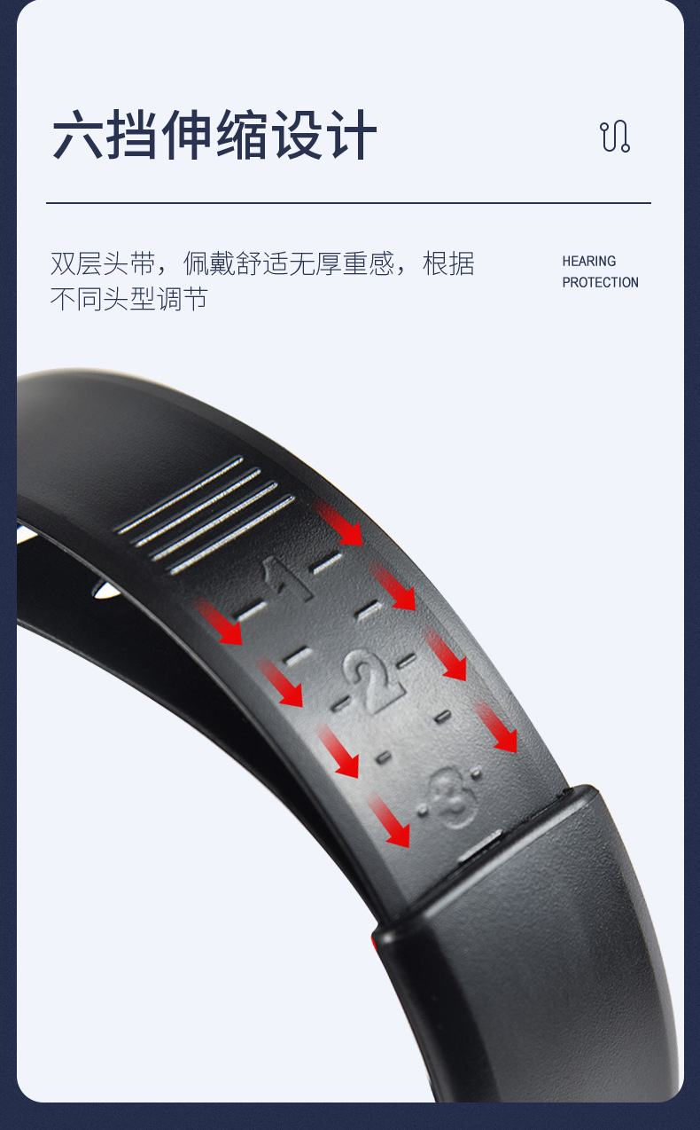 華特7302防噪音耳罩軟墊內(nèi)采用降噪海綿填充外部采用仿皮包邊柔和緊貼耳邊減少壓迫感;六擋伸縮設(shè)計(jì)雙層頭帶,佩戴舒適無厚重感,根據(jù)不同頭型調(diào)節(jié)。