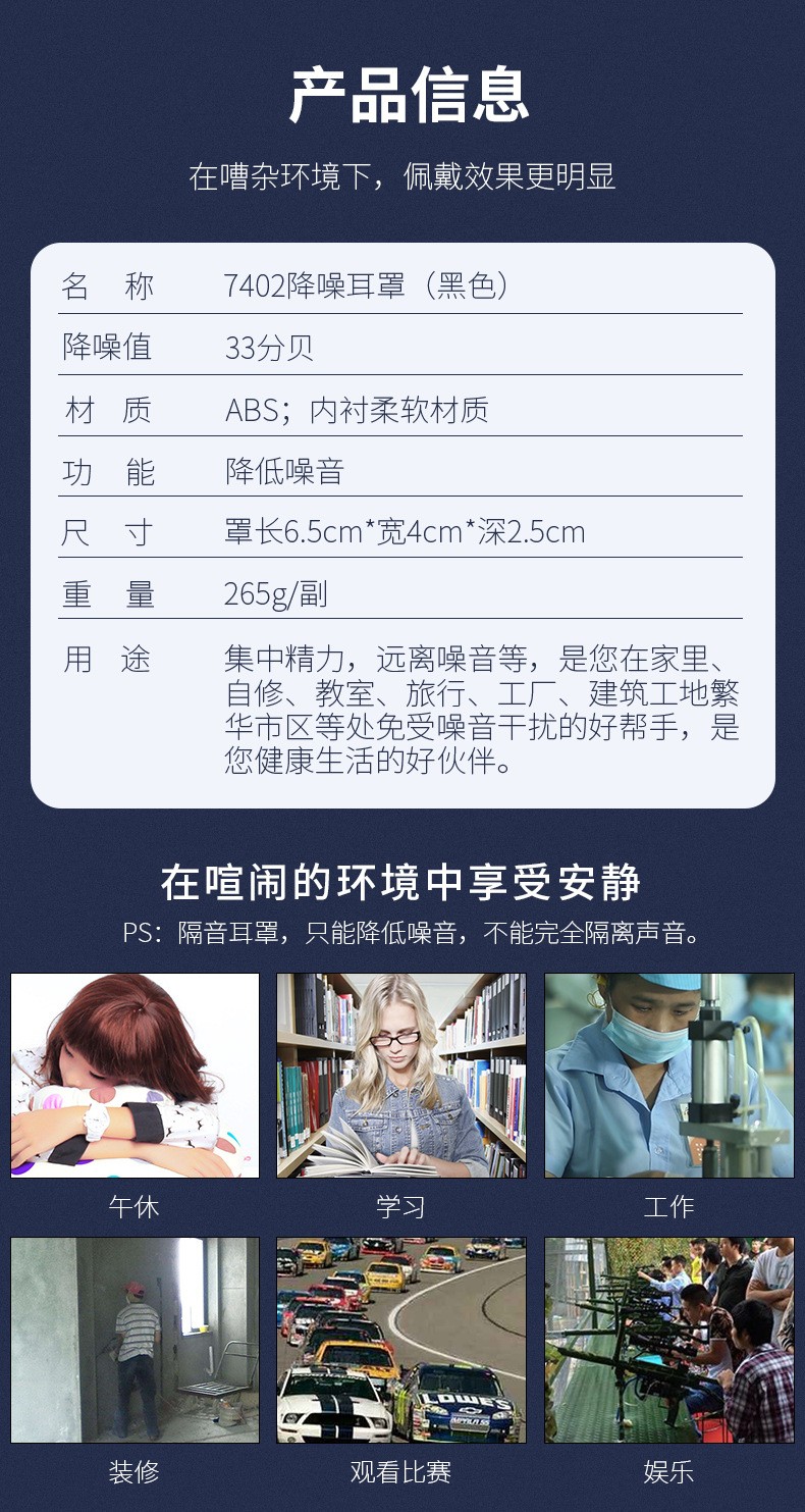 名稱:7402降噪耳罩(黑色)