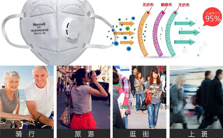 折疊式KN95防塵口罩,霍尼韋爾推出升級款防霧霾口罩,過濾粉塵效率大于95%。