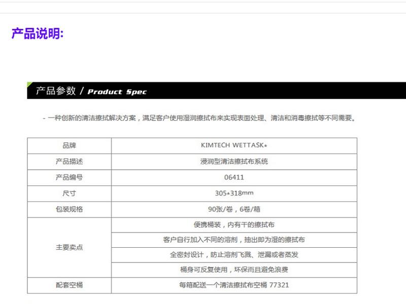 金佰利06411KIMTECH*金特*WETTASK*浸潤型清潔擦拭布一種創(chuàng)新的清潔擦拭解決方案,滿足客戶使用濕潤擦拭布來實現(xiàn)表面處理、清潔和消毒擦拭等不同需要;