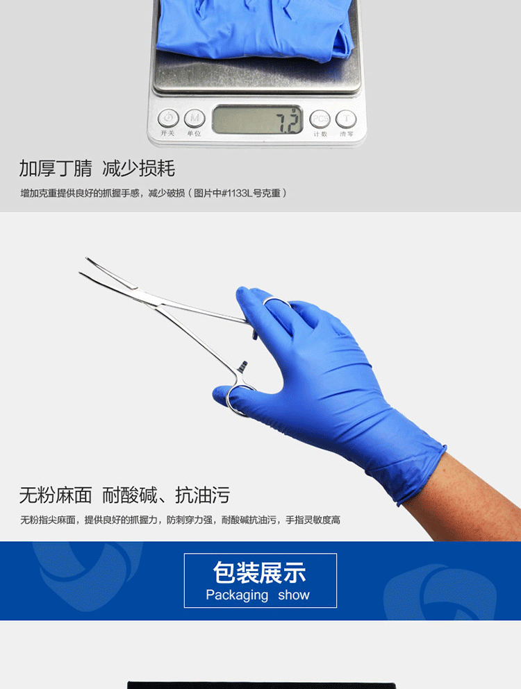 麥迪康1133一次性丁腈手套無粉麻面,耐酸堿、抗油污;