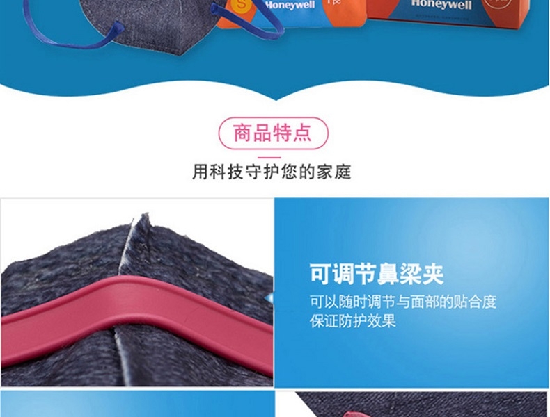 霍尼韋爾防塵口罩可調(diào)節(jié)鼻梁夾,棉質(zhì)彈性耳帶,優(yōu)質(zhì)過濾材質(zhì),高性能呼吸閥,內(nèi)置海綿鼻墊。