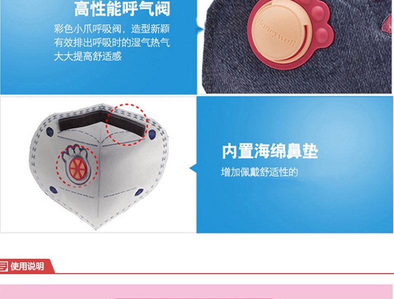 霍尼韋爾D7051SV-B10萌寵男孩防塵口罩可調(diào)節(jié)鼻梁夾;棉質(zhì)彈性耳帶;優(yōu)質(zhì)過濾材質(zhì);高性能呼吸閥;內(nèi)置海綿鼻墊。