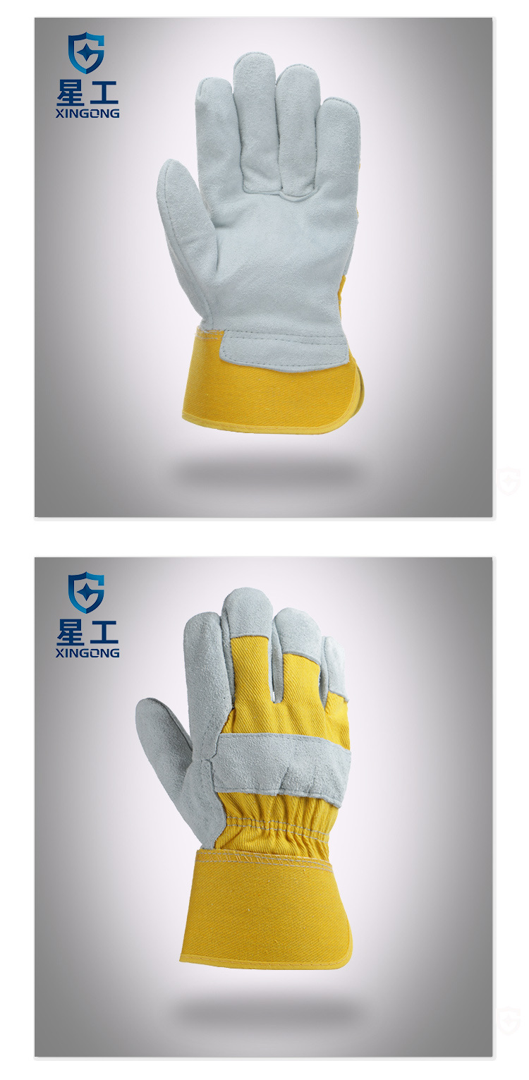 星工XGS-P1焊工耐磨手套采牛皮加強掌面,抗熱傳導同時可防止少量金屬濺射;加長護腕,手套可覆蓋衣袖,給手部保護;做工精細,重要部位采用雙線縫制,手指間做了加固處理,耐磨不易開線。