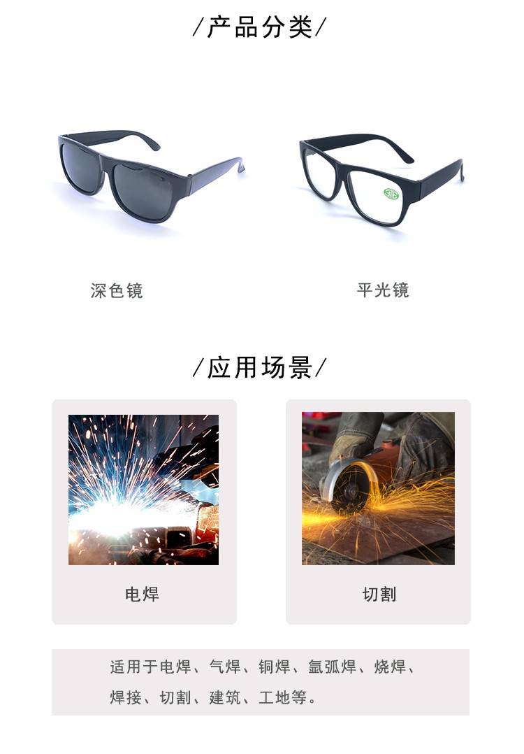 以勒防護(hù)眼鏡適用于電焊、氣焊、銅焊、氬弧焊、燒焊、焊接、切割、建筑、工地等。